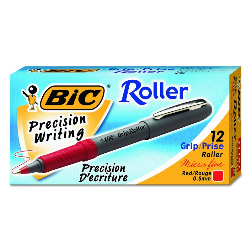 - BIC Grip Rollerball Pen Extra Fine (0.5 mm), Red Ink, Dozen box (GREM11)