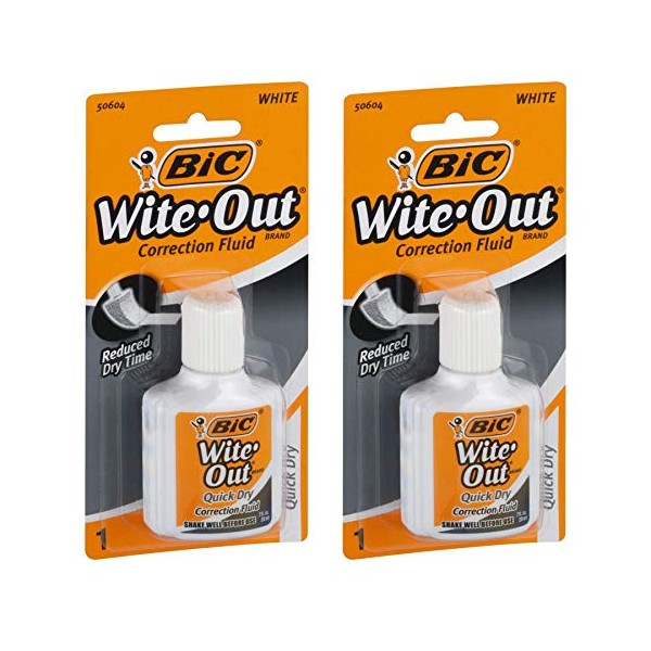 Bic Quick-Dry Wite Out Correction Liquid with Foam Brush .7oz (2-Pack)