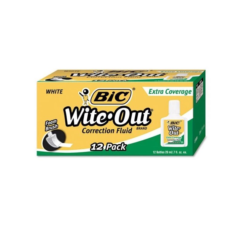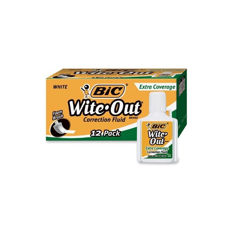 Bic Wite-Out Extra Coverage Correction Fluid, 12 Bottles