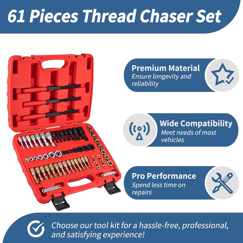 Bicos 61 Pieces Thread Chaser Set Thread Restorer Kit UNC UNF and Metric Thread Restorer Tool wit Thread Files