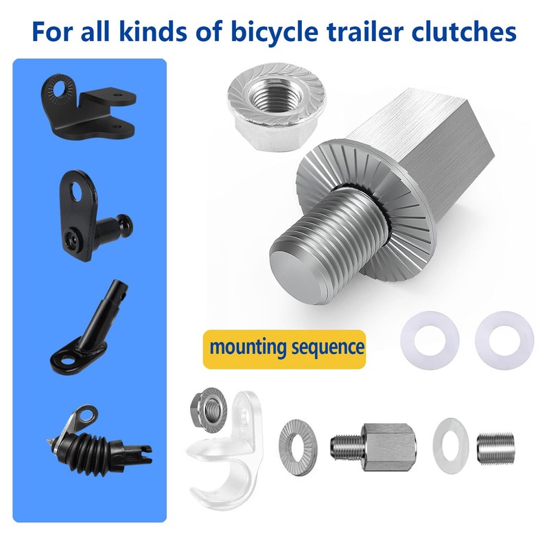 - EASY INSTALLATION: The adapter has a user-friendly design and can be quickly installed on the bicycle axle. It provides adjustable spacers to fit various trailer sizes and types.
