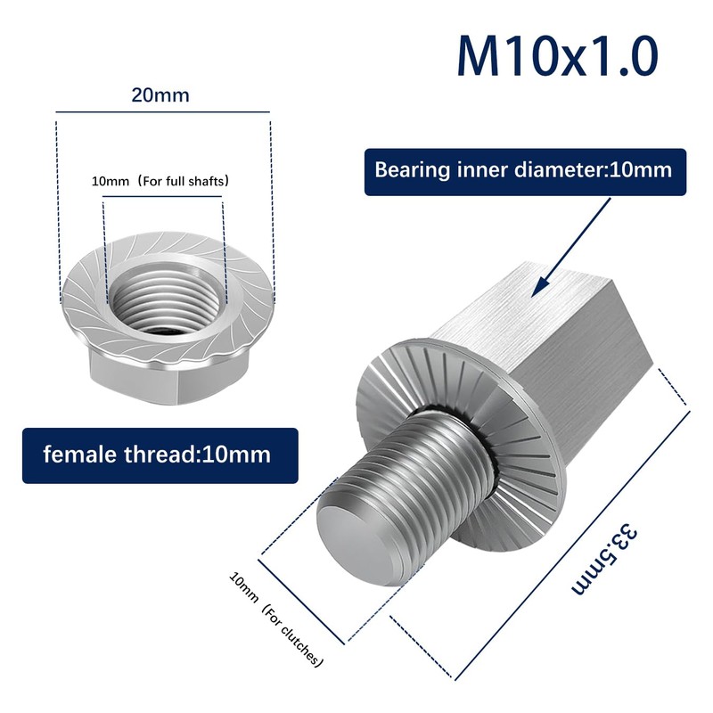 - APPLICABLE SIZE: Please note that this bicycle axle adapter is suitable for M10*1.0 solid axle (for solid axle with diameter 9.76~10 mm)