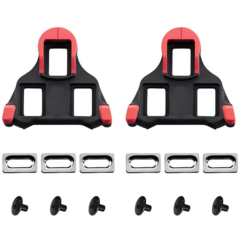 - Package contents: This SPD cleats set contains 2 pieces pedals, 6 pieces screws, 6 pieces steel plates and 1 piece practical screwdriver, red pedals length 8 cm, width 8 cm, high 2 cm. Adjustable range 0 degrees, total weight of only 80 g