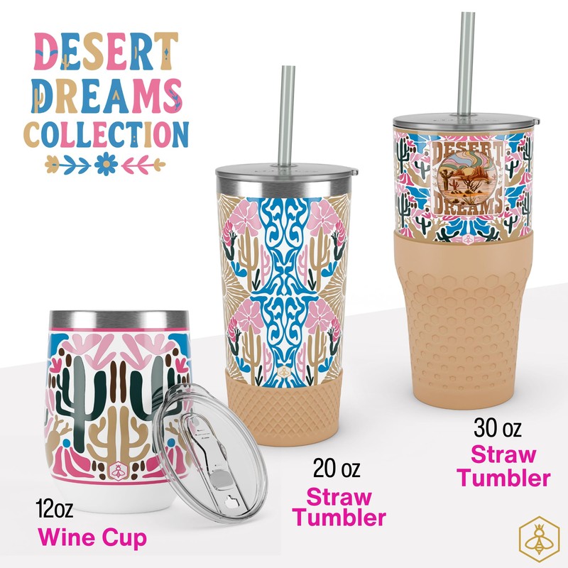 Biddlebee 12 Oz Stainless Steel Wine Tumblers with Slider Lids, 2-Pack – Double Wall Insulated Cups for Wine, Coffee, Cocktails, or Tea – Keeps Drinks Hot or Cold for Hours (Desert Dreams)
