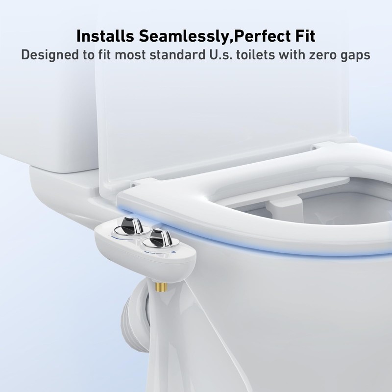 Bidet Attachment for Toilet, Non-Electric Self Cleaning Dual Nozzle (Feminine/Posterior), Adjustable Water Pressure, Cold Water Sprayer Bidet for Existing Toilets