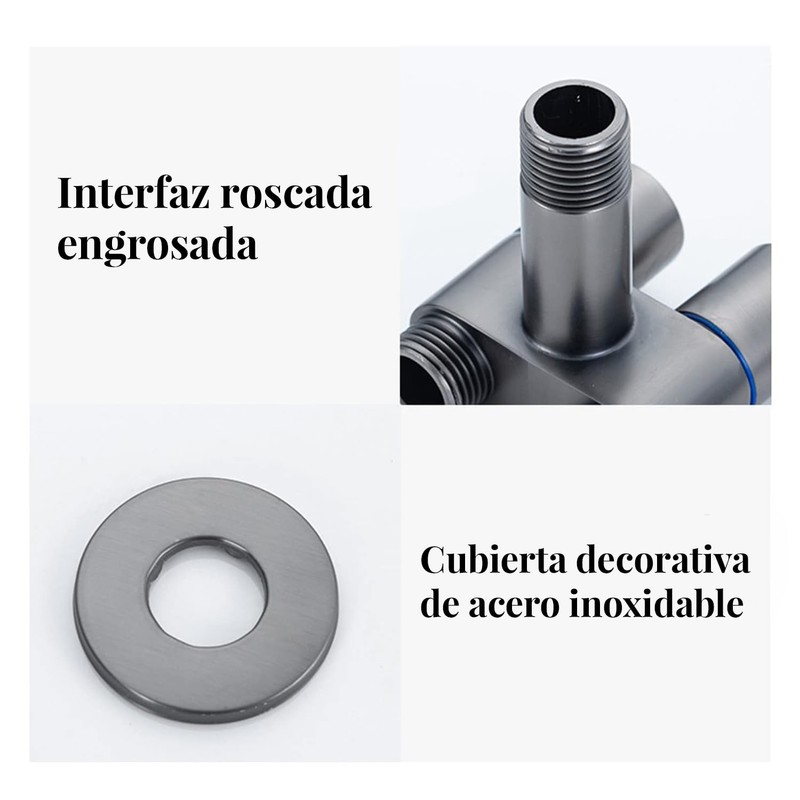 - 【2 válvulas de cierre independientes】:Salida de agua de doble interruptor, puede estar fuera del agua al mismo tiempo, sin afectarse entre sí. Se puede ajustar por separado. Con una función de apagado y ahorro de agua, tendrás una experiencia de ducha suave.