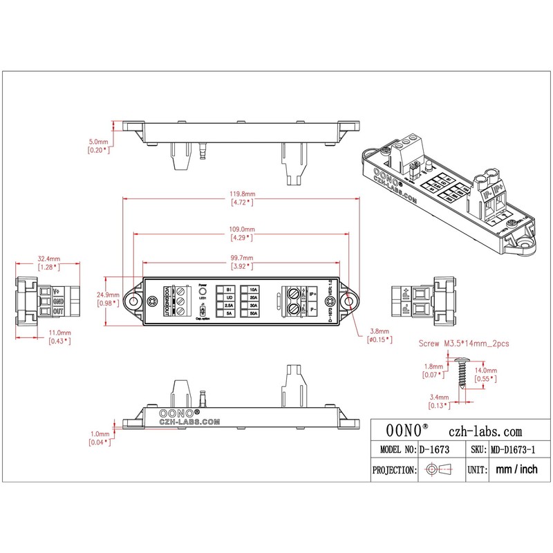 • Model number: D-1673A/B20. Design based on IC ACS712ELCTR-20A.