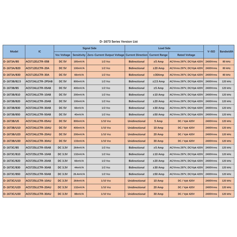 2, This series of products are designed based on Hall-Effect-Based IC ACS712, ACS724 or ACS725. Available in unidirectional and bidirectional versions and from 2.5 - 50 Amps.