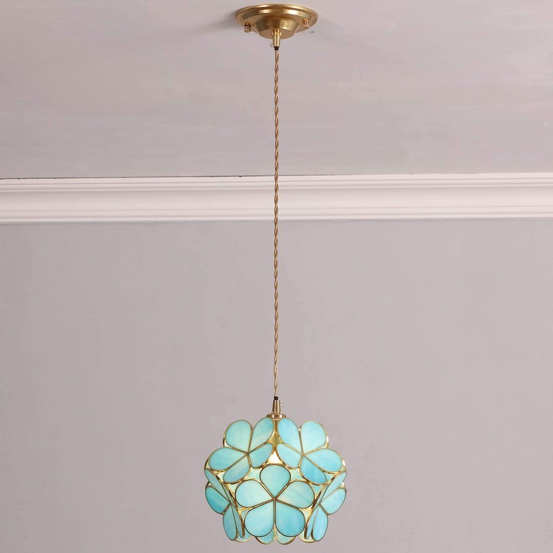 Bieye L10747 Cherry Blossom Tiffany Style Stained Glass Ceiling Pendant Light with 8-inch Wide Lampshade (Ice Blue)