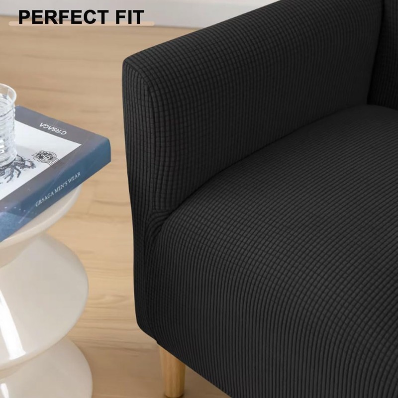 Bifaunvogel Waterproof Accent Chair Cover with Arms Stretch Jacquard Single Sofa Armchair Slipcovers Soft Couch Cover Upholstered Reading Club Chair Protector for Bedroom Office Black