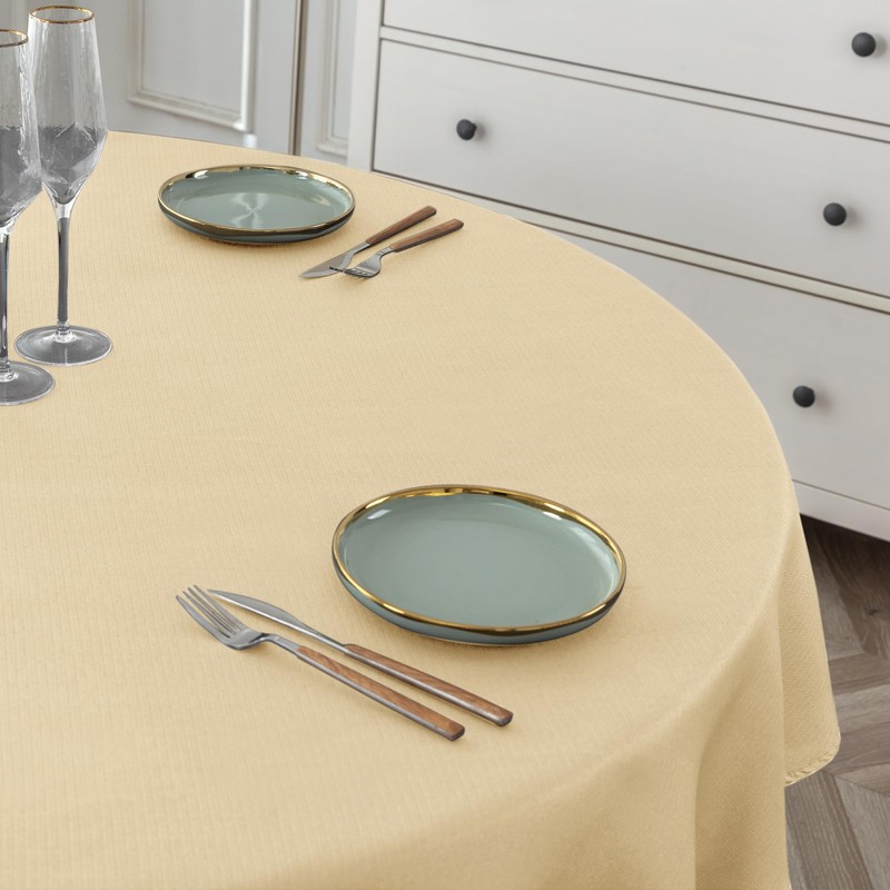 - What's in the Package? Each package contains 2 packs of champagne textured table cloth made from 100 percent premium polyester fabric.
