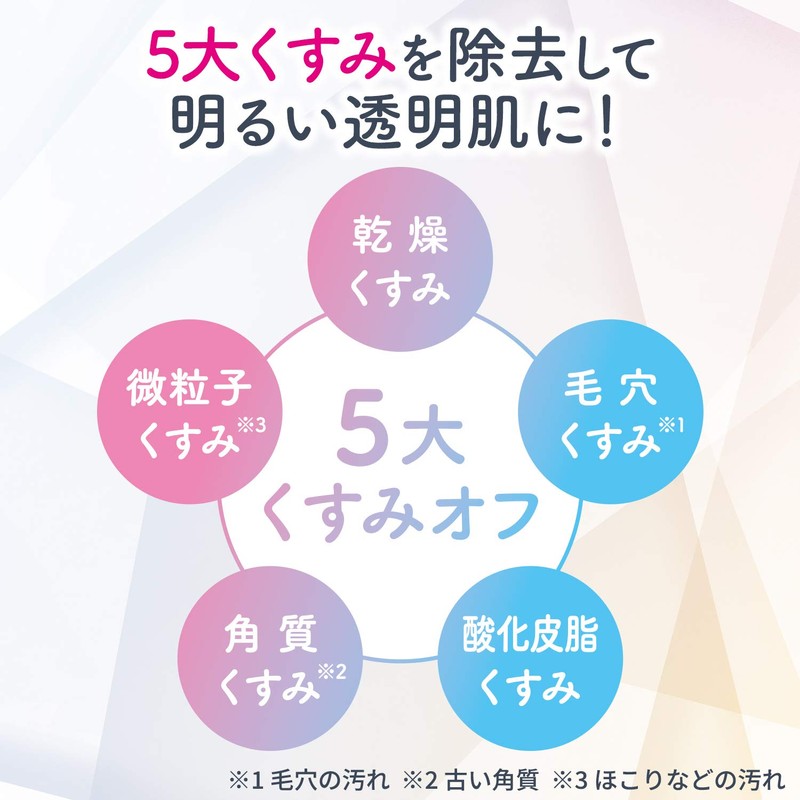 - 5 natural ingredients concentrate on 5 dulls; Removes dullness and leads to bright and transparent skin