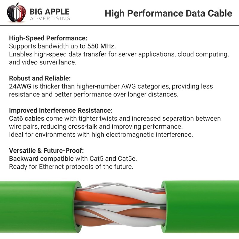 - Package Include: 1000 Feet Cat 6 Ethernet Cable is a CMR UTP Bulk Wire, 550 MHz – Green