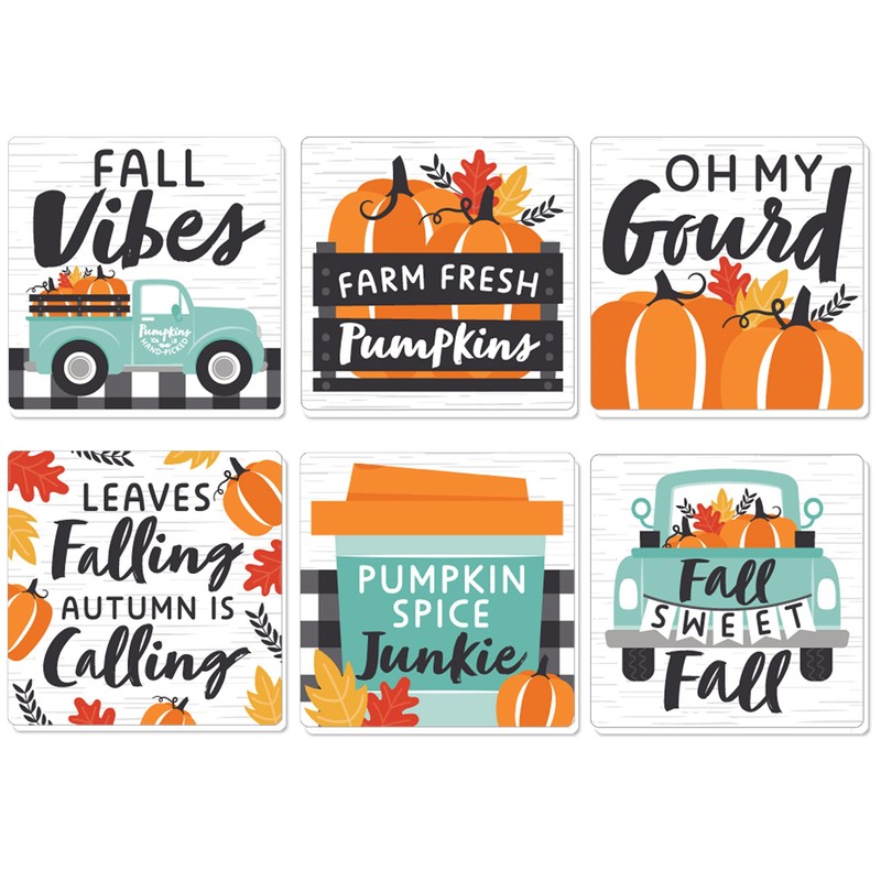 Big Dot of Happiness Happy Fall Truck - Funny Harvest Pumpkin Party Decorations - Drink Coasters - Set of 6