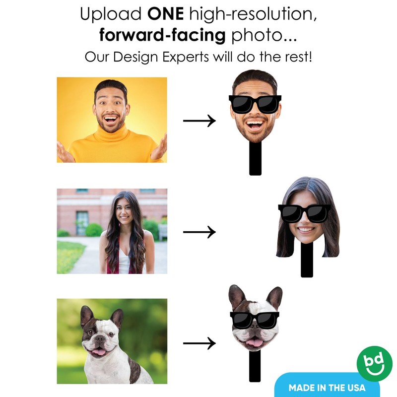 Big Dot of Happiness Personalized Sunglasses Fun Face Cutout Paddle - Custom Photo Head Cut Out Photo Booth and Fan Prop - Upload 1 Photo - 1 Piece