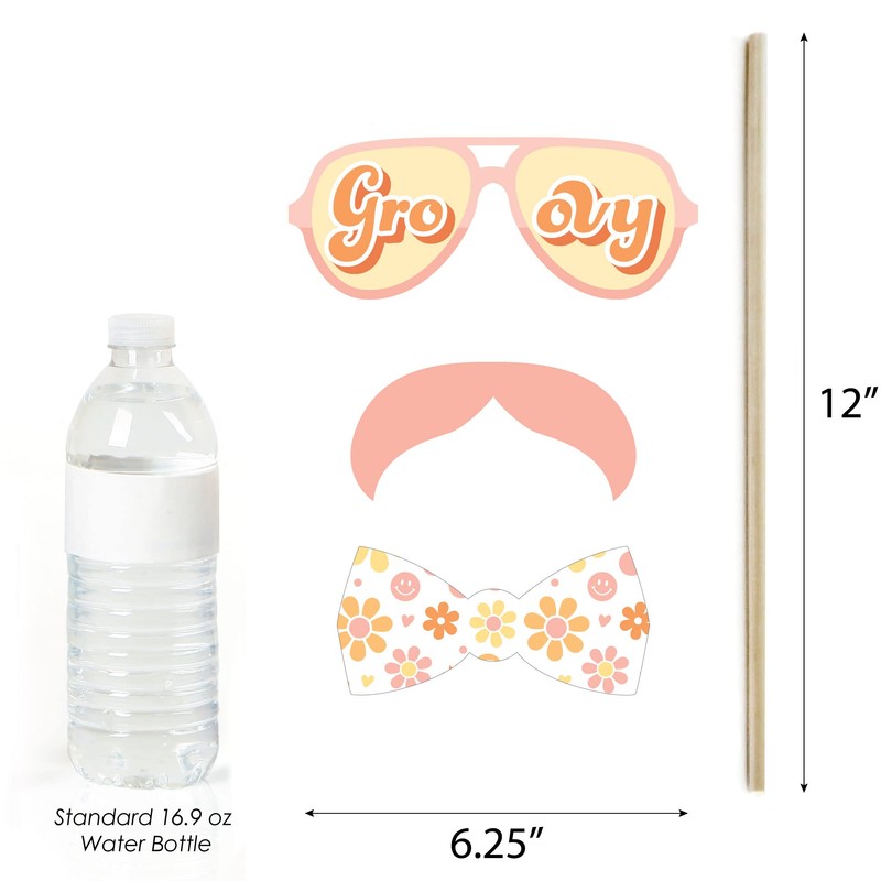 - HIGH-QUALITY PARTY SUPPLIES: Stay Groovy photo booth props are professionally printed on thick cardstock paper. They will arrive cut out and ready to assemble with the included prop kit sticks and stickers.