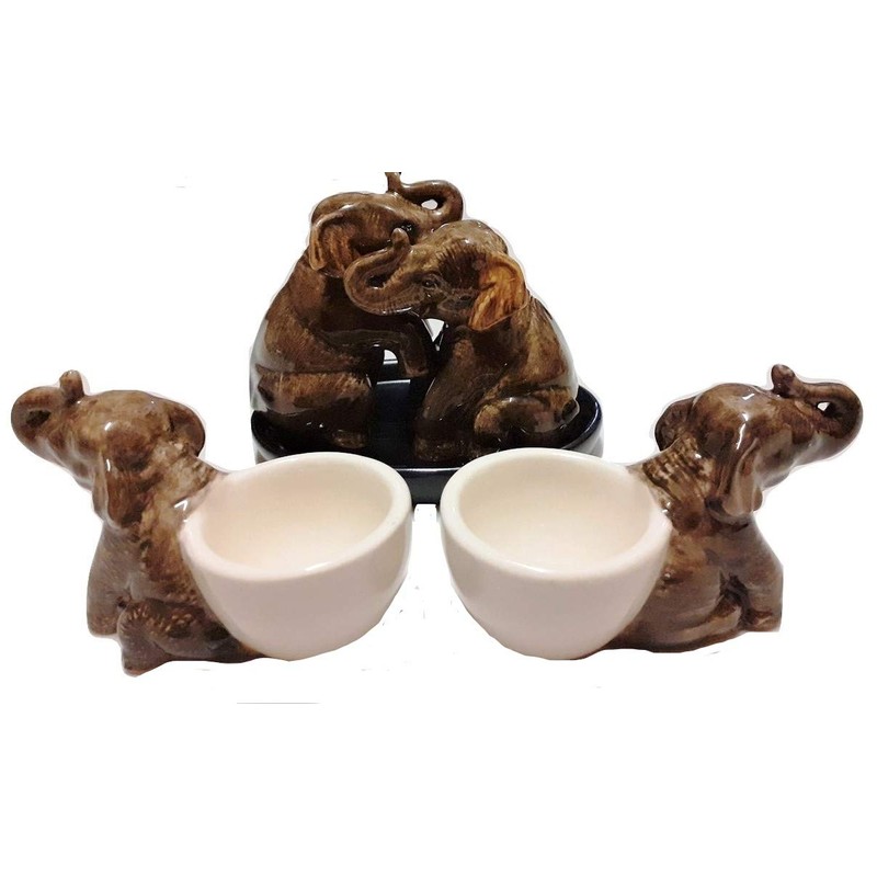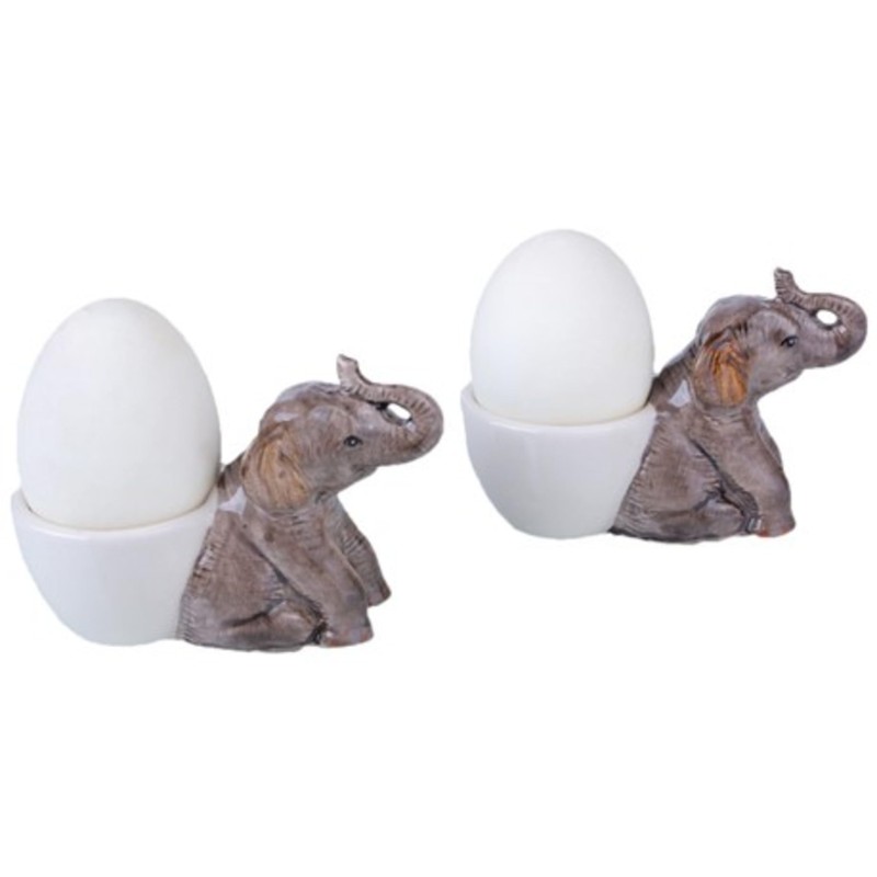 Big Elephant Set Salt/Pepper 2 pieces plus 2 Eggcups total 4 pieces handmade/painted ceramics