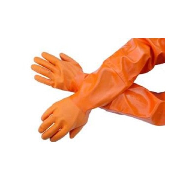 Cold Weather gloves used for trapping Beaver, Otter, and Muskrat. Professional Waterfowl hunters use them for breaking ice and setting large Decoy spreads. No more wet cold hands from leaky gloves. Our long, 26 inch insulated gloves bring a whole new level of performance for trappers and waterfowl hunters. Unlike other trapper’s gauntlets our gloves are flexible, super tough, and last a long time! We’ve had trappers use them for an entire season without getting any punctures or holes in the gloves. For waterfowl use, our long insulated gloves are tough enough to break ice, keep you warm, and best of all keep you dry in the harshest of conditions! Gloves are either Orange or Blue depending on inventory.