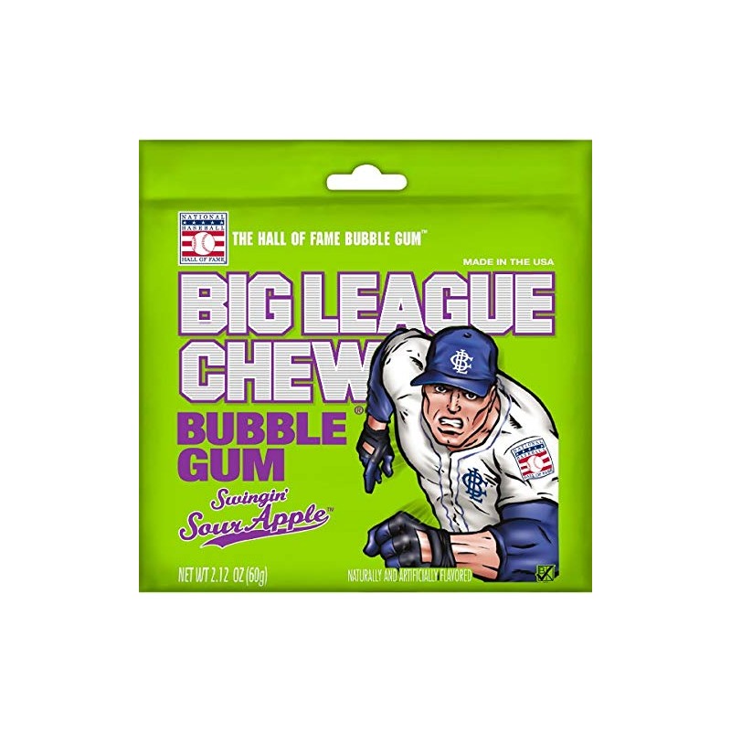 Big League Sour Apple Bubble Chew Gum, 12 per pack -- 9 packs per case.