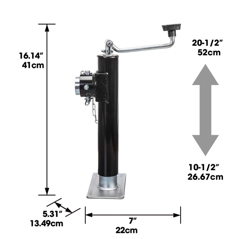 - Swing-back tube mount trailer jack easily raises and lowers any trailer up-to a 1 ton (2,000 lb) capacity