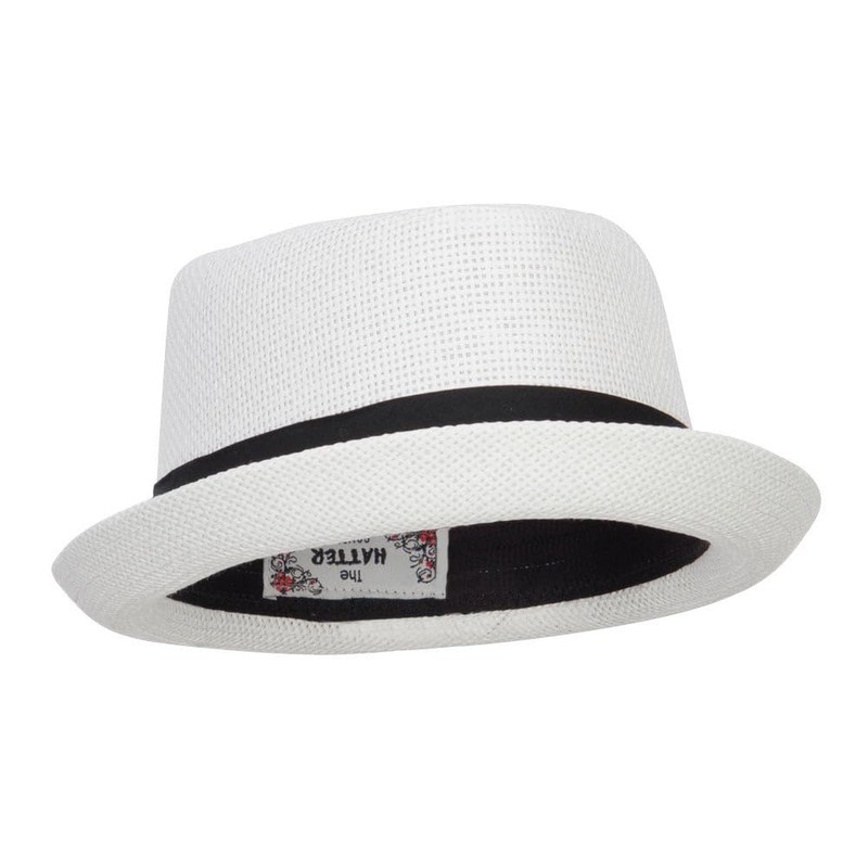 Big Size Solid Upbrim Pork Pie Fedora - White 2XL-3XL