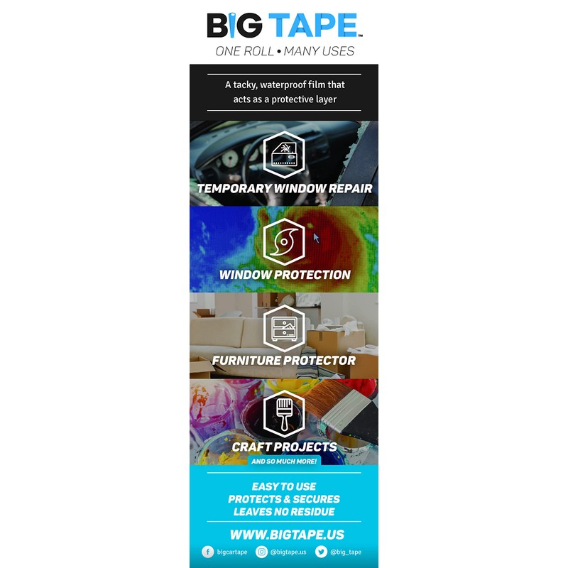 - Big Tape - 17.5 inch wide adhesive film made to temporarily fix a car window