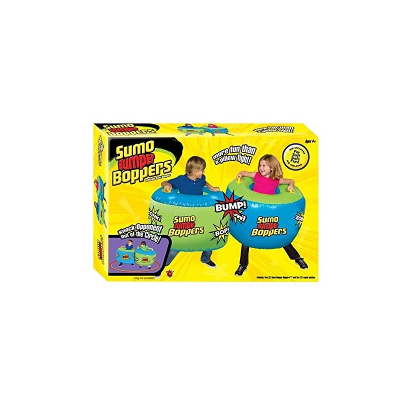- DETAILS: More fun than bumper cars or pillow fights, inflatable Sumo Bumper Bopper set is soft, safe fun for everyone! Active play for ages 4 years and older. Contains two bumper and two repair patchs.
