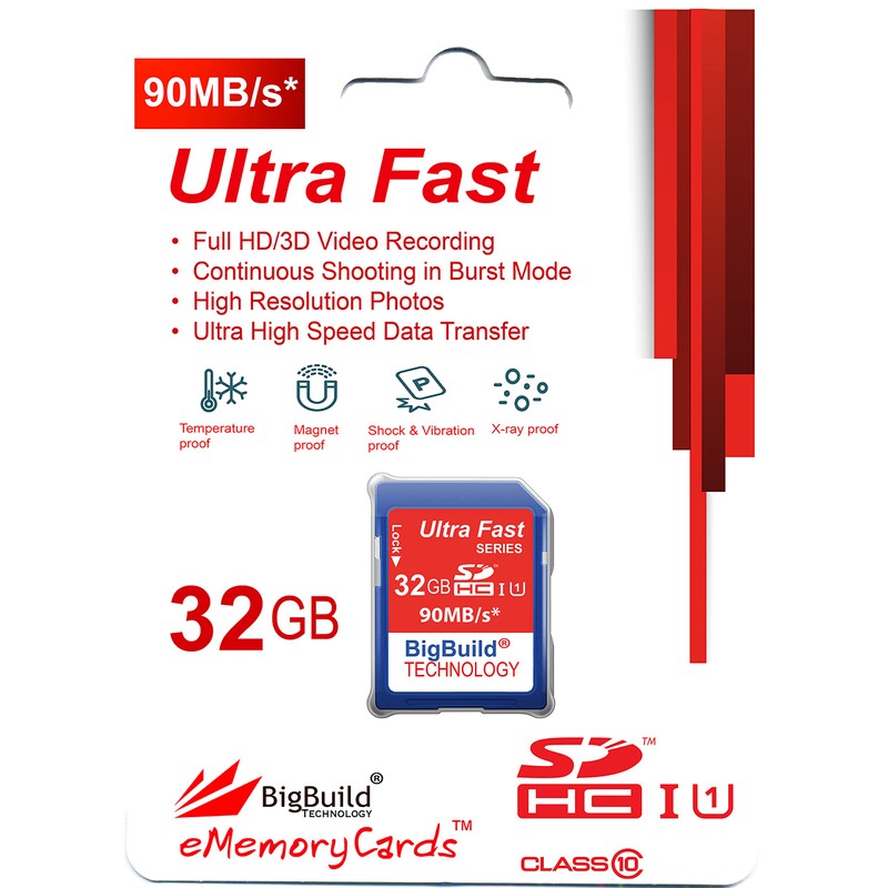 BigBuild Technology 32GB Ultra Fast 90MB/s SD SDHC Memory Card for Nikon Coolpix S2550 Camera