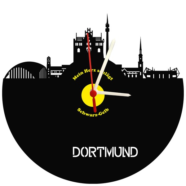 bigcopy e.K. Dortmund Skyline Wall Clock High-Quality Acrylic Glass Clock with Silent Quartz Movement 3 mm Thickness Black / Yellow