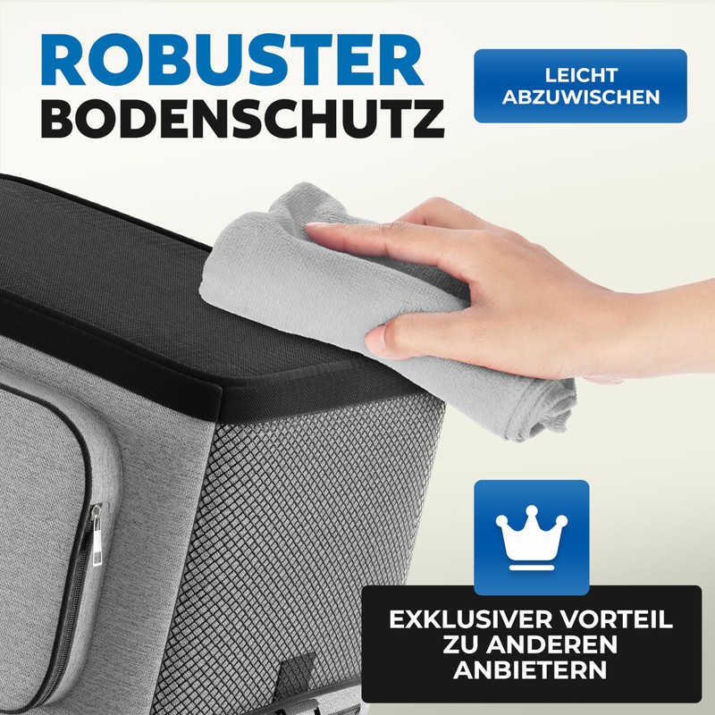 The reinforced base ensures stability, even on uneven surfaces. Thanks to its easy-care surface, the bag is easy to clean and is therefore particularly suitable for everyday use.
