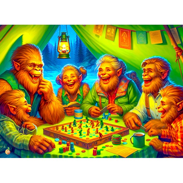 Bigfoot Family Game Night Funny Bigfoot Jigsaw Puzzle for Women Men Adults and Kids