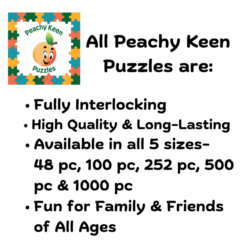 - PUZZLE PERFECTION: Peachy Keen Puzzles feature vibrant images and fully interlocking pieces for a beautiful picture with an enjoyable challenge.