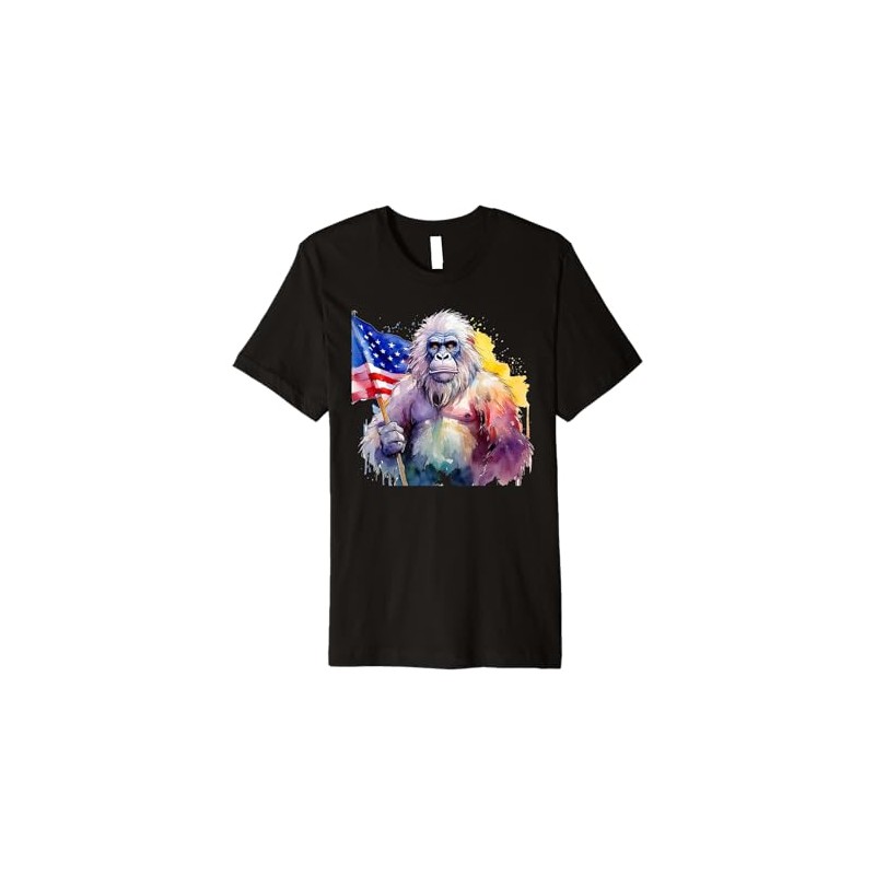 - Watercolor Art Bigfoot Silhouette Believer Sasquatch Tshirts for Men, Women, Kids and Boys. 4th Of July Watercolor Artwork of holding American Flag, USA.