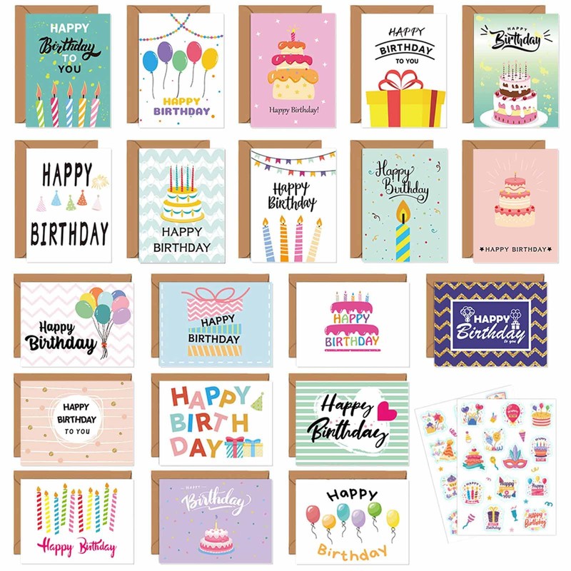 Bighan 20 Pcs Birthday Cards Assortment Happy Birthday Greeting Card with Envelopes and Stickers for Men Women and Kids Birthday Supplies 10 * 15CM