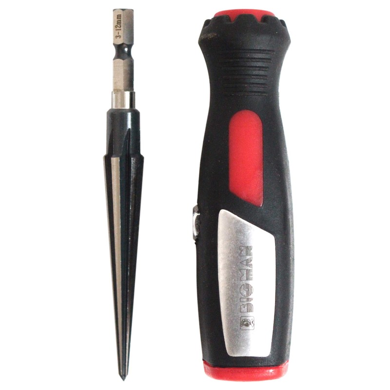 BIGMAN BTR-1 Hexagonal Shaft Taper Reamer, 0.1 - 0.5 inches (3 - 12 mm), 2-Way Handle Included