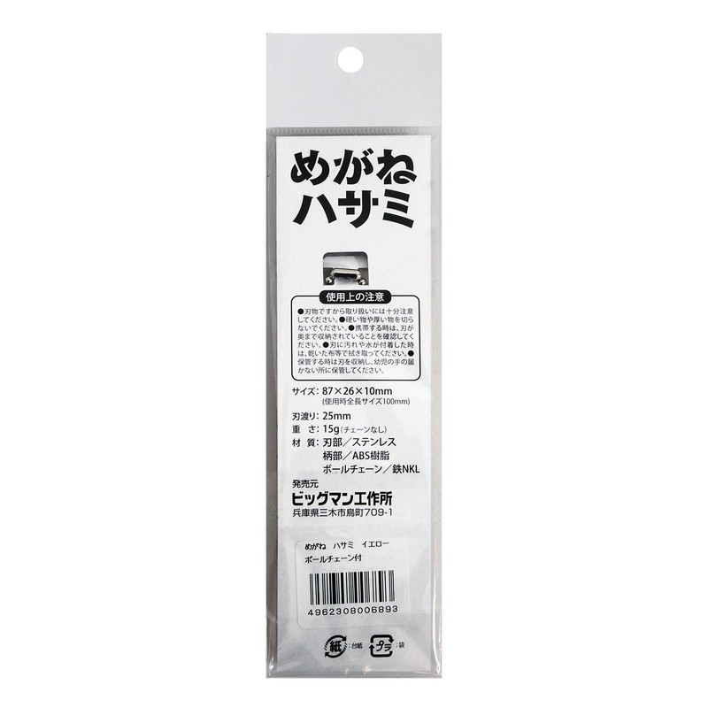 Bigman Eyeglass Shaped Small Scissors Stainless Steel Blade with Ball Chain (Yellow)