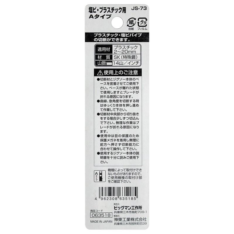 BIGMAN JS-73 Jigsaw Blade for PVC and Plastic