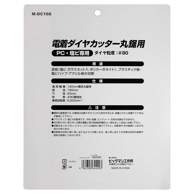 Bigman M-DC160 Electroplated Diamond Cutter for Circular Saws