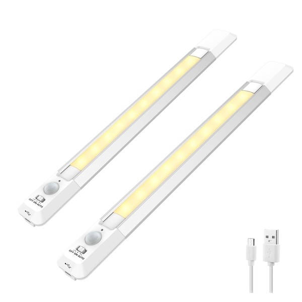 BIGMONAT Motion Sensor LED Night Light,Wireless USB Rechargeable Under Cabinet Strip Lights Stick-On Magnetic Closet Lighting Bar for Kitchen, Hallway, Motion Activated Indoor Light - White, 2Pack