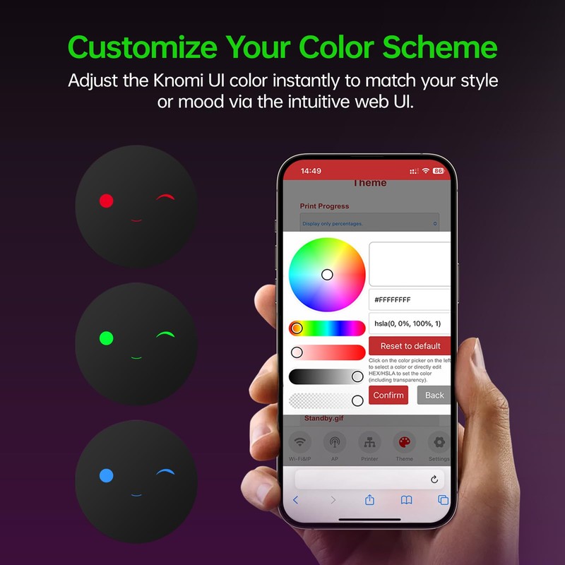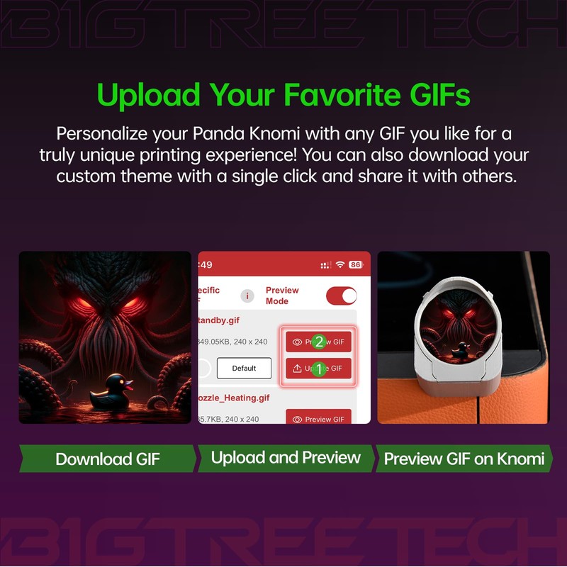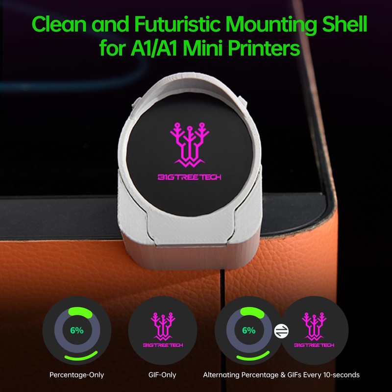 • 【Fully Customizable UI】With fully customizable GIFs and personalizable expressive color scheme (just remember, your GIFs should have a transparent background), Panda Knomi screen revolutionizes the way you interact with your printers! You can dial-in any style you like conveniently from your phone’s web UI. 3 printing progress display options are offered: Percentage-Only; GIF-Only; Percentage&GIFs Combo(10 sec each). Bring your printer to life with BTT Panda Knomi!