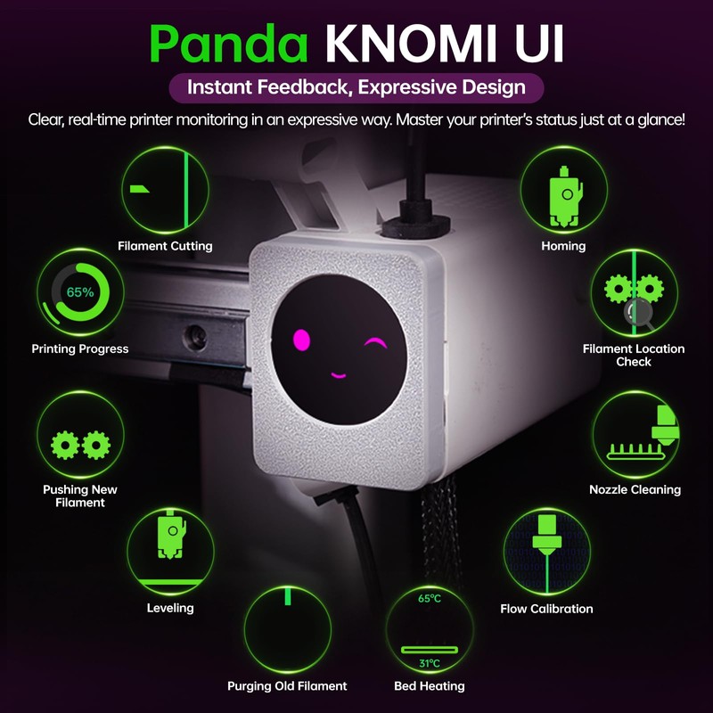 • 【Instant Animation Feedback】BIGTREETECH Panda Knomi display helps to monitor your printer and transforms its actions into corresponding animations, giving you an at-a-glance update of the printer’s status. Enjoy real-time updates and wireless convenience Panda Knomi brings you, ensuring your printer's status is always clear.