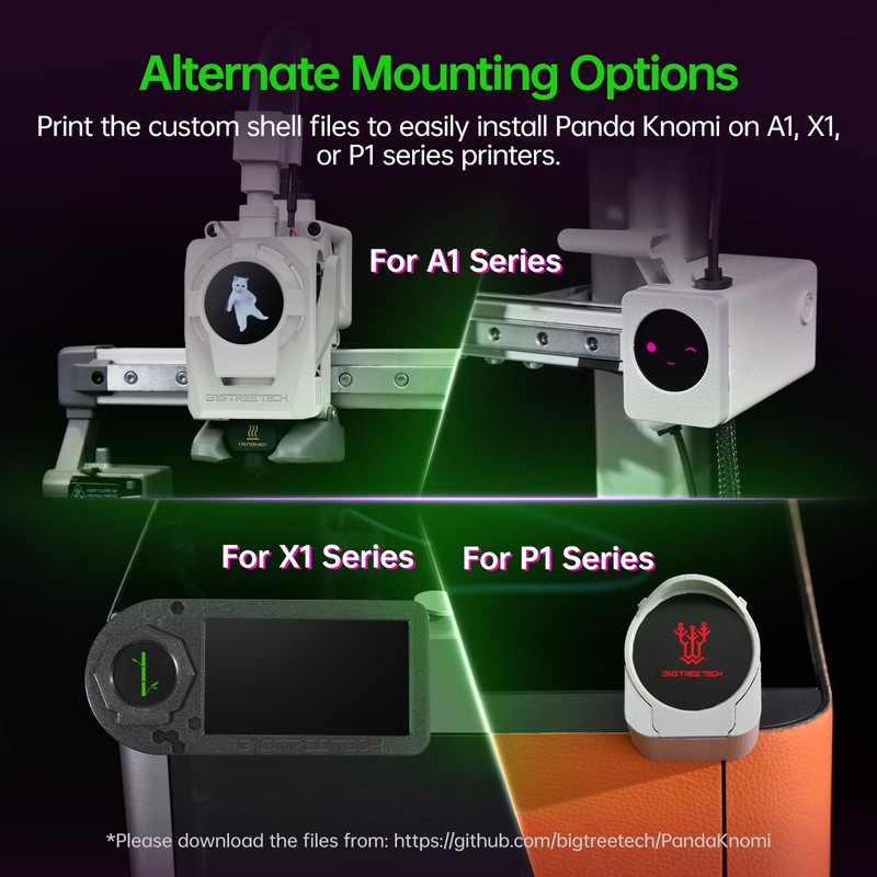 • 【For Bambu-Lab Printers】Package includes Panda Knomi Screen only. BTT Panda Knomi is compatible with Bambulab A1/A1 Mini/P1P/P1S/X1C/X1E, but you need to print the mounting shell by your own (stl file offered on Github/bigtreetech/PandaKnomi) first. The instruction guide comes with the package will make the setup as simple as it can be.