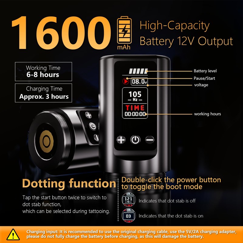 - Battery Performance: 1600mAh supports 6-8 hours of use with a 3-hour charge. Type-C charging (5V, 2A) and 4-12V adjustable output in 0.1V steps. Designed for safety, it cannot be used while charging, ensuring stability and longer lifespan.