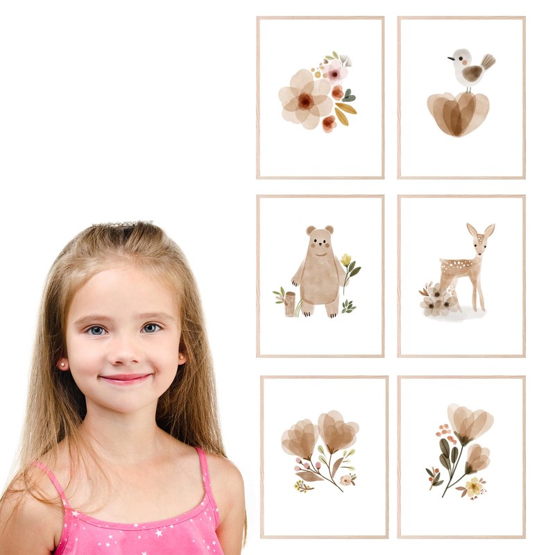 Baby Nursery Wall Decor Dive into the world of exquisite nursery styling with BigWig Prints' Baby Nursery Wall Decor. Created to serve as both an aesthetic and educational addition to your child's space, these prints encompass a myriad of elements. From animals to rainbows, the art pieces stimulate the young mind to explore and imagine. Designed to fit into an 8x10" frame, the Unframed Set of 6 provides a complete look, enabling you to decorate an entire wall or sprinkle individual pieces around the room for a cohesive theme.