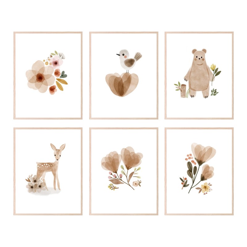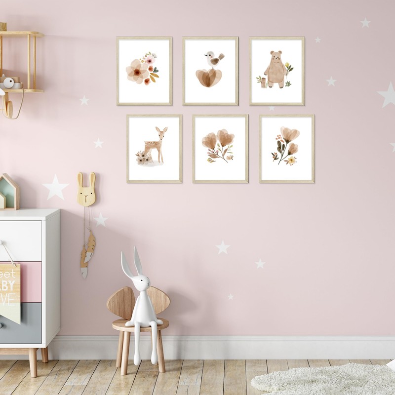 BigWig Prints BigWig Prints - Boho Baby Room Wall Art, Woodland and Botanical Nursery Decor for Girls, Cute Boho-Inspired Baby Room Decorations, Neutral Nursery Wall Art - Unframed Set of 6 (8x10)