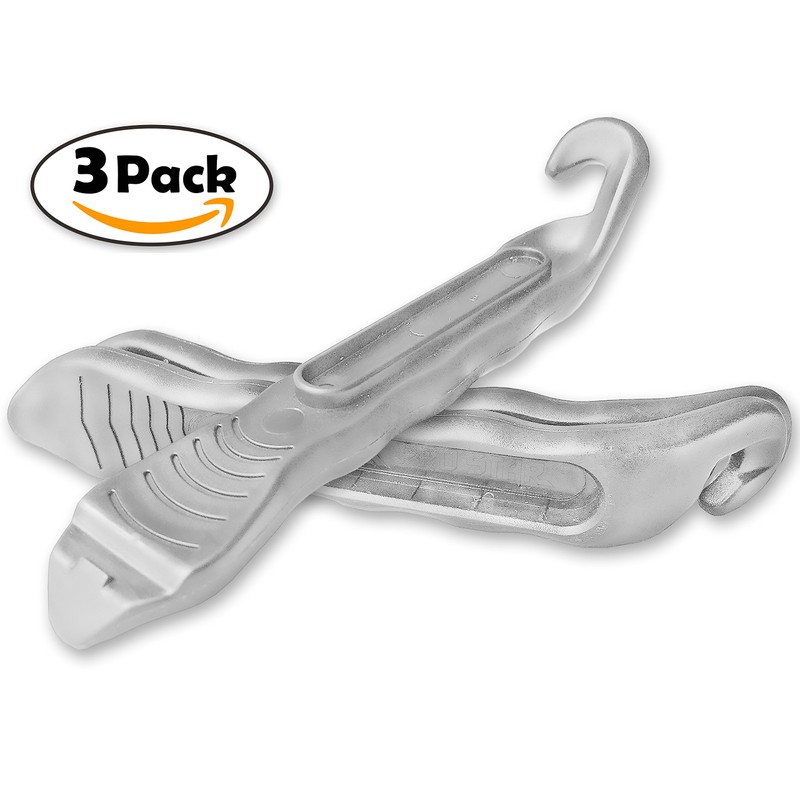 Bike Tire Lever - Premium Hardened Plastic Levers to Repair Bicycle Tube - Must Have Tool Kit for Road Bicyclist - Set of 3 (Silver)