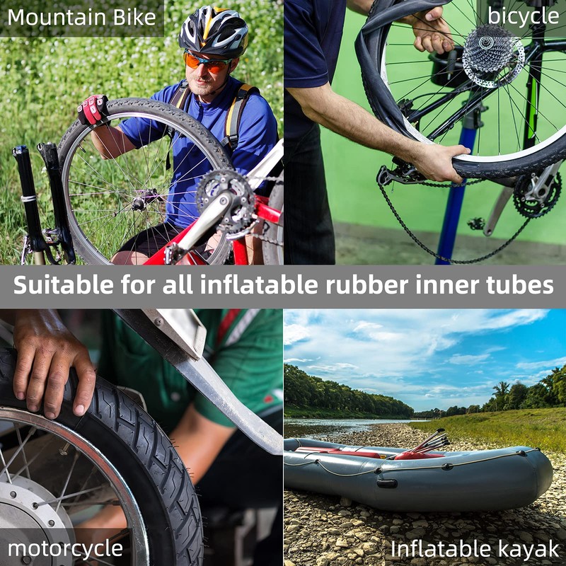 - 【Widely compatible】There are two types of tyre patch in the kit for you to use, not only for Road, Mountain, Motorcycle BMX Bikes, ATV, bicycles trolleys, wheelchair inner tubes, but also for other inflatable rubber products, such as rubber rowing boats. and many more