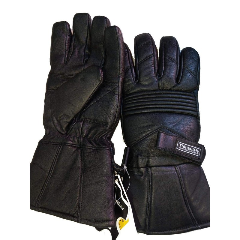 Bikers Gear Motorcycle Thinsulate and Waterproof Leather Gloves, Black, Size Medium