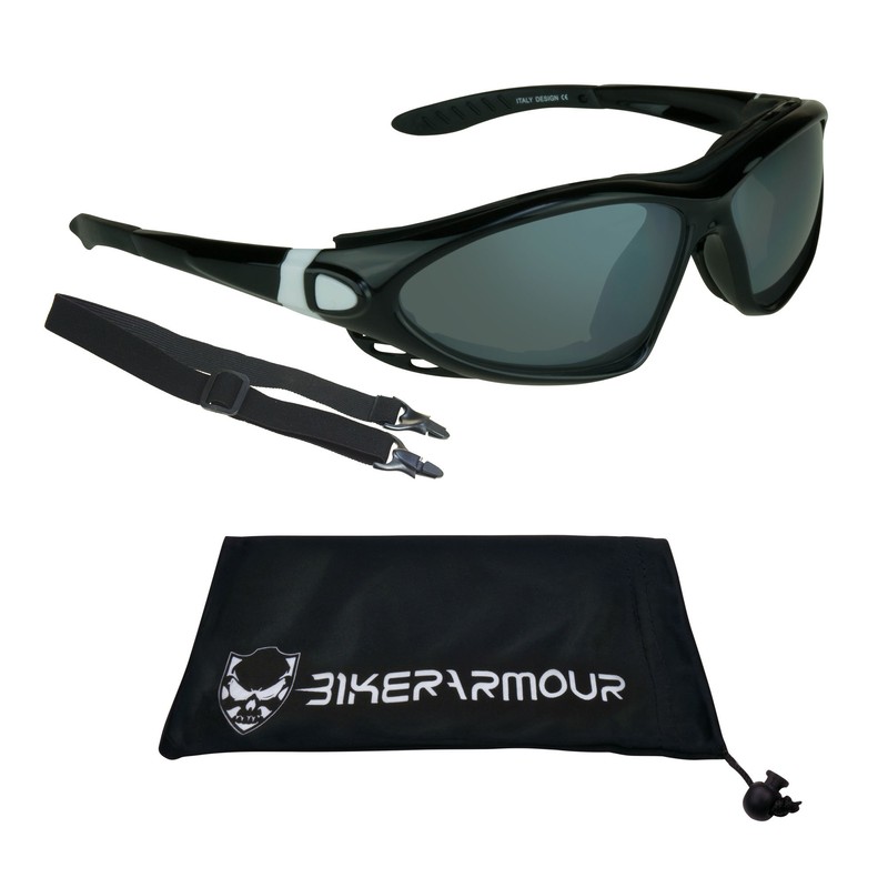 Bikershades Motorcycle Safety Sunglass Goggles Interchangeable Adjustable strap & Removable Foam Cushion