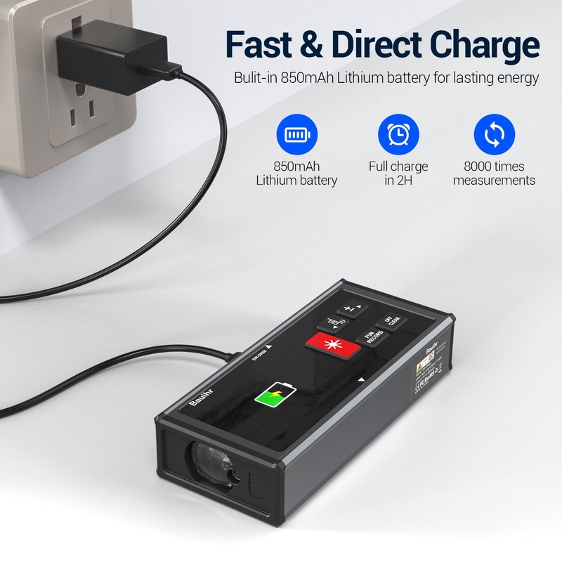 - Outstanding Efficiency: This Bauihr dual laser distance meter adopts Class II laser(output <1mW) and 393ft(120m) measuring range with accuracy up to ±1/8inch, and can switch between single or bilateral laser without moving frequently. Providing Distance/Area/Volume/Pythagorean/Angle measuring methods, you can choose them flexibly according to your demands, 4 units Ft/In/M/Ft+In, and 3 reference points for a free adjustment to get an accurate result.